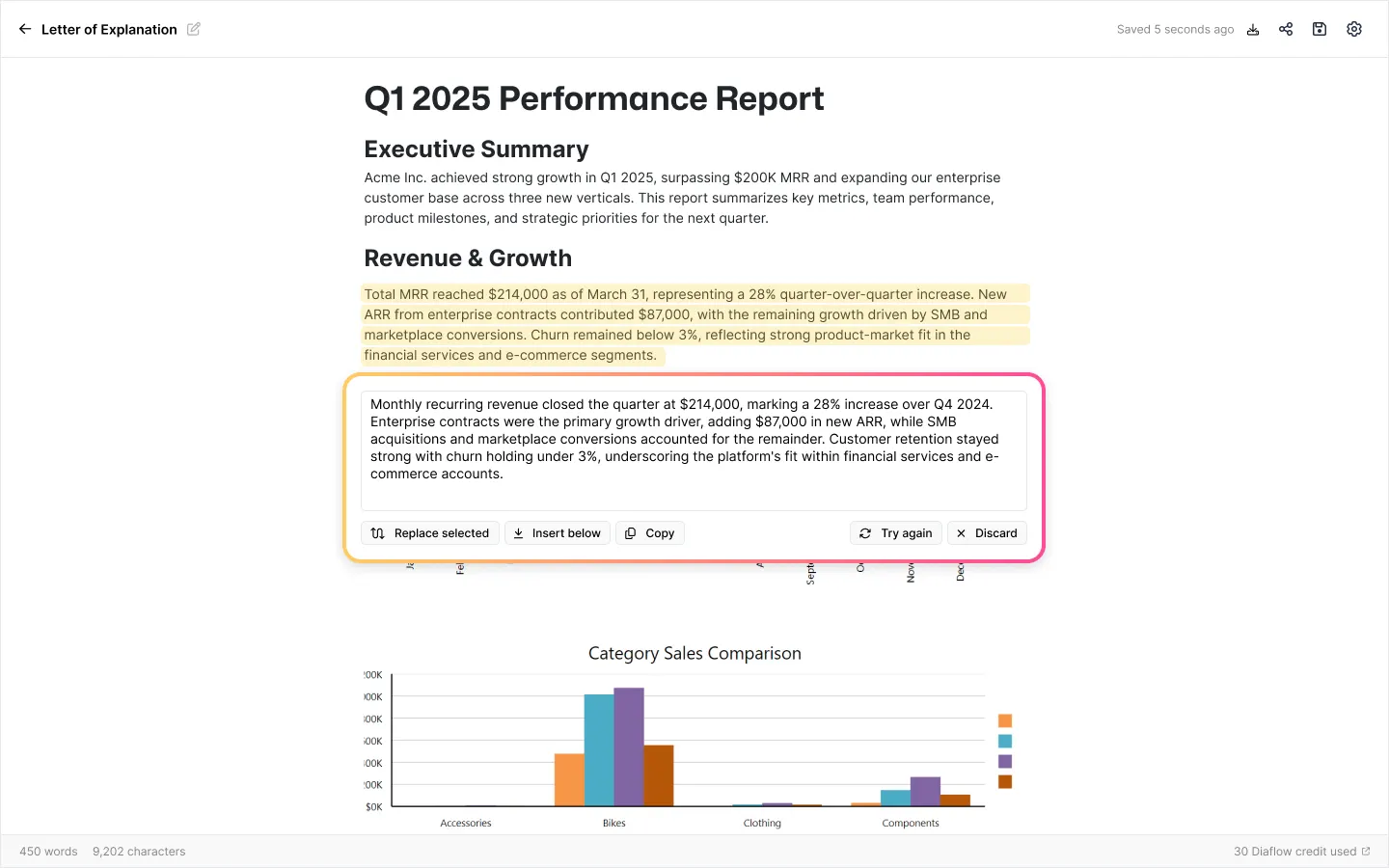 From formal proposals to customer-facing materials, generate professional documents in seconds, complete with your branding and formatting.